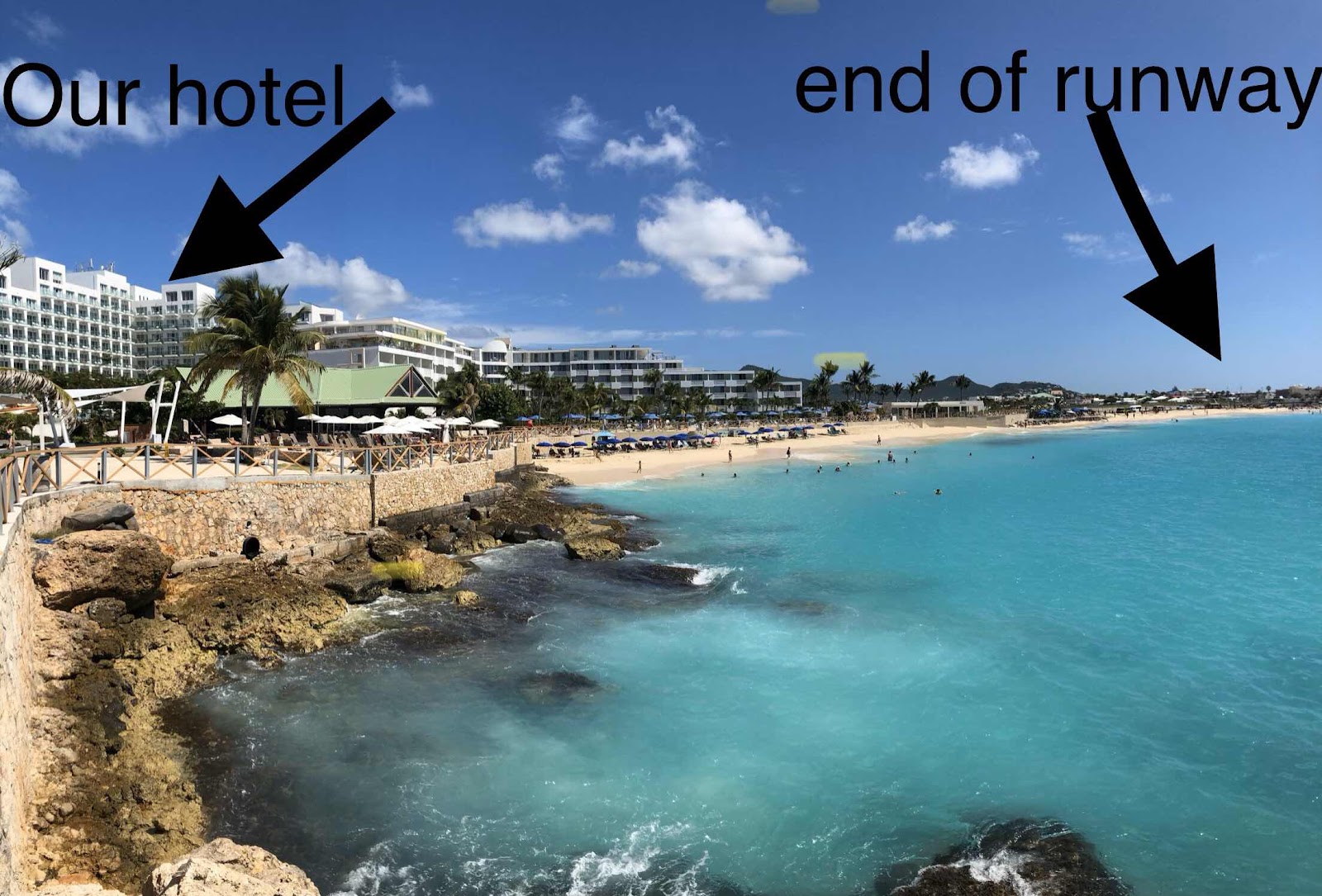 This photo will help explain why our hotel and beach provided such front-row seats for the takeoff/landing show provided by the Princess Juliana International Airport.