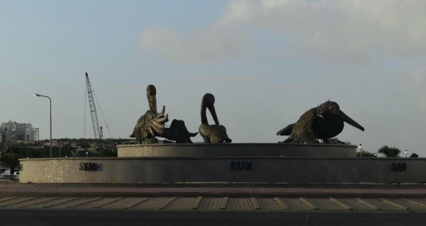 These huge cement birds stare eerily at drivers at a roundabout near the Princess Juiliana International Airport.