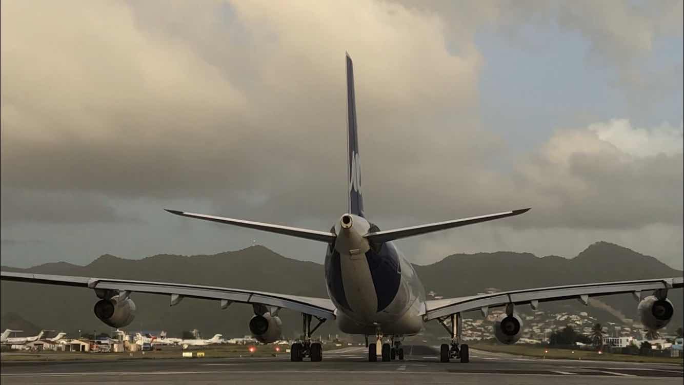 We just made it back to our hotel in time to see the largest aircraft servicing the island during our stay take off. Compared to the Airbus A321 take-off we experienced earlier today, this is an Air France Airbus A340-300 with four turbofans, each producing 34,000 pounds of thrust. And let me tell you, the total thrust was somethin' else! We got a veritable sand-blasting from the experience, and Pam was literally blown back towards the water's edge. But what a thing to experience!